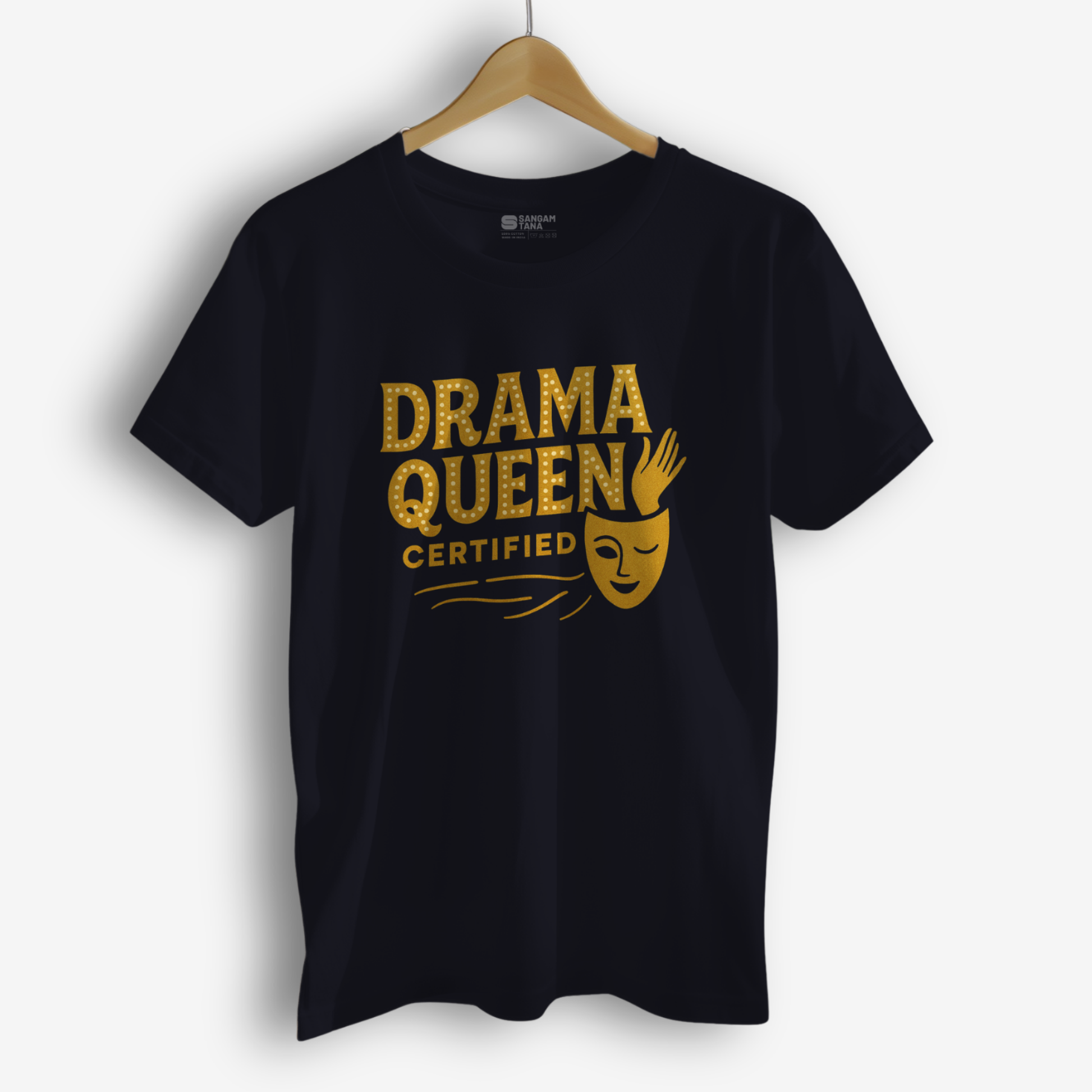 Own your flair with the βDrama Queen Certifiedβ T-shirt β a playful tribute to expressive dance forms like Kuchipudi. Ideal for performers, stage divas, or anyone with a flair for drama, this cotton tee brings comfort and bold personality together.