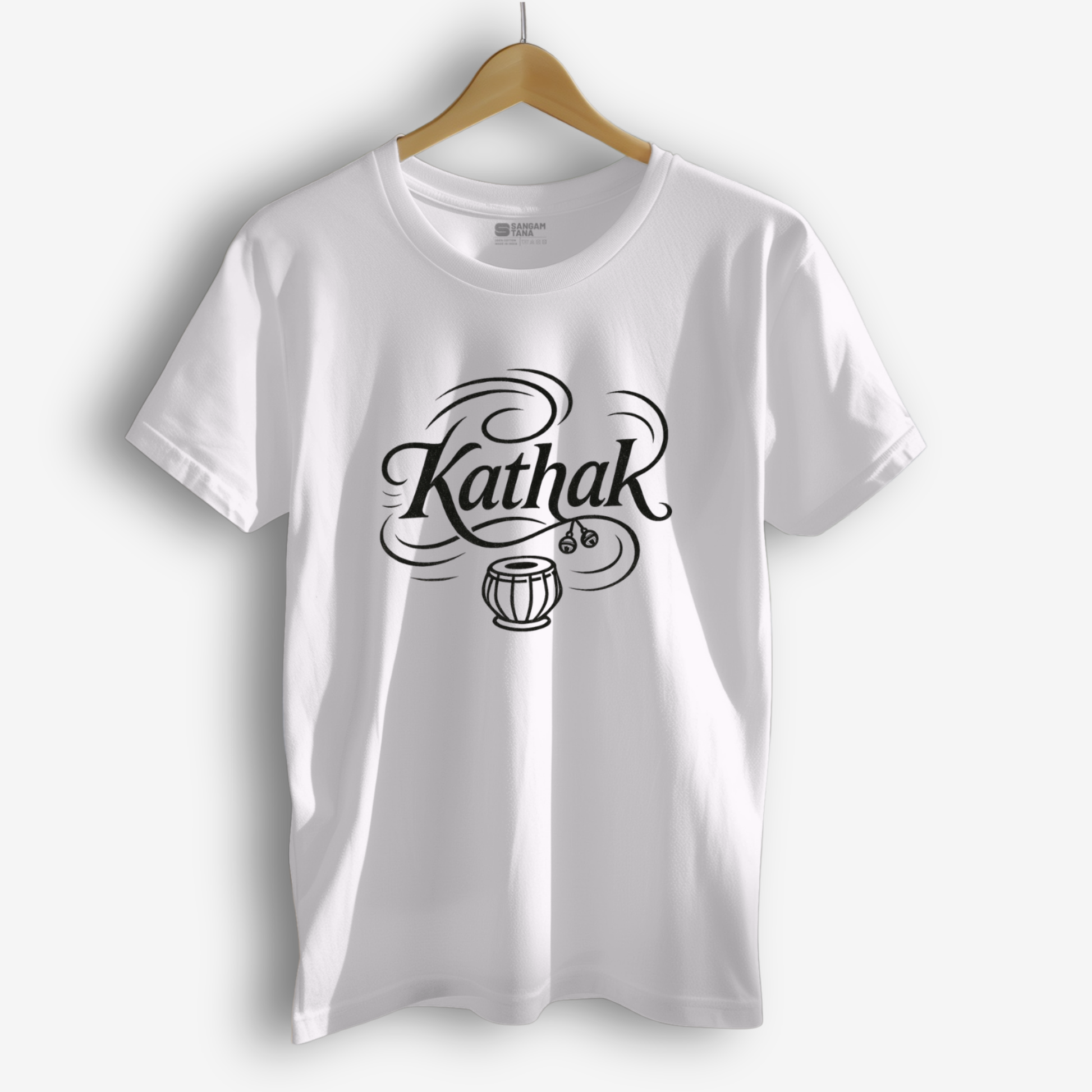 Celebrate the storytelling soul of Kathak with the Whirls and Words T-shirt. Featuring graceful calligraphy and a tabla motif, this design reflects the dance’s blend of rhythm, poetry, and movement—all captured in a single fluid line.